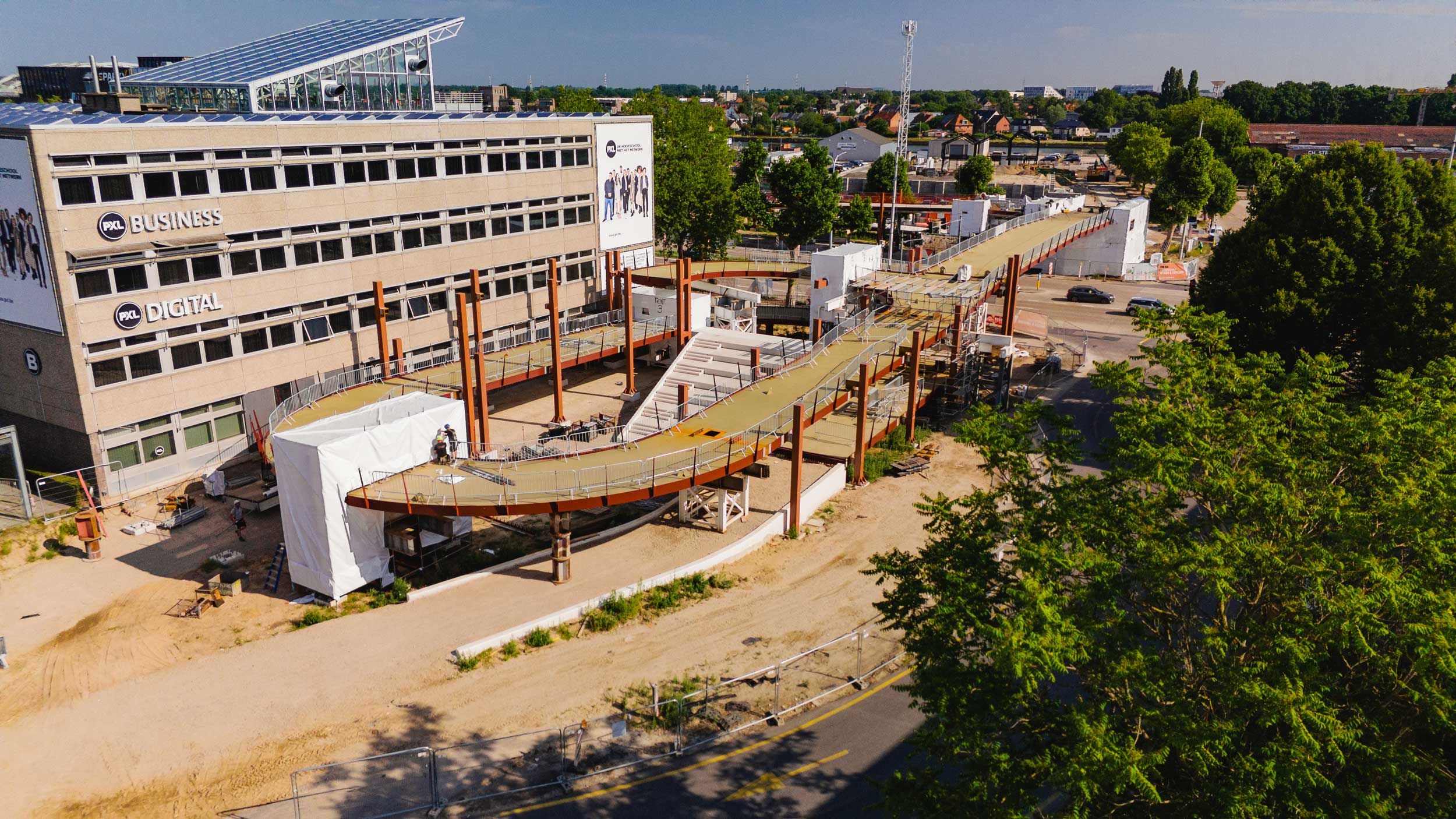 Misschien is het u opgevallen, deze fiets- en voetgangersbrug heeft nog geen echte naam. En uiteraard verdient ze een herkenbare naam die in de volksmond gebruikt kan worden. Momenteel loopt de tweede fase van de naamgeving. Uit meer dan 1.300 ingezonden voorstellen koos de jury drie finalisten: Campusbrug, Elfde Liniebrug of Pixelbrug. De uiteindelijke naam wordt bekendgemaakt tijdens de inhuldiging van de brug in het najaar 2025.