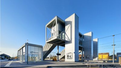 Tekst: <p>La gare de Fleurus, proche de Brussels South Charleroi Airport, a été entièrement rénovée afin de faciliter l’accès à ce dernier par transport en commun. Le chemin de fer, combiné à des navettes TEC, se voit équipé de nouvelles infrastructures mobilisant environ 170 tonnes d’acier, dont une impressionnante passerelle au-dessus des voies. Trois cages d’ascenseurs et autant d’escaliers viennent compléter le projet, ainsi que deux petits bâtiments pour les voyageurs.</p>