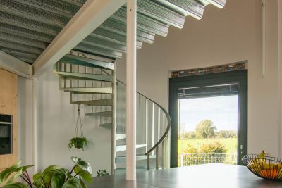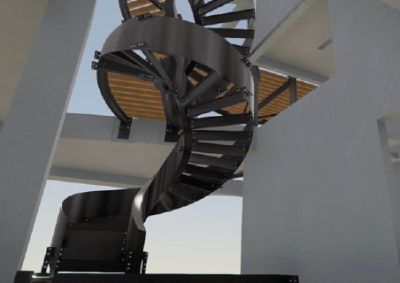 Tekst: <p>Le nouvel escalier en colimaçon dessert plusieurs niveaux d'un penthouse dans un bâtiment existant. La construction comprend l'escalier elliptique en colimaçon avec des plaques torsadées ainsi que les différents niveaux du penthouse.</p><p> L'escalier repose sur une lourde poutre en béton qui a été exposée et mesurée avec précision. Le modèle 3D a ensuite été utilisé pour traduire la torsion de l'escalier en dessins exécutables, en alignements de dalles et en assemblage de la structure. </p><p>Bien que l'escalier en colimaçon ne pèse que 4,2 tonnes au total, il a été divisé en plusieurs parties de construction. Ces pièces ont en fait été hissées au sommet du penthouse et introduites par une étroite ouverture sur le toit du bâtiment. Les différentes parties de la construction ont ensuite été soudées ensemble sur place. Des accouplements d'assemblage ont été utilisés pour maintenir les relations entre les différentes parties de la construction.</p>