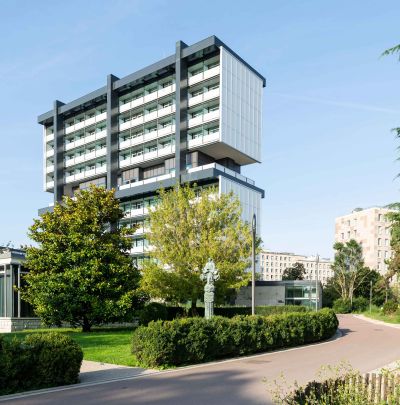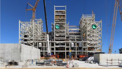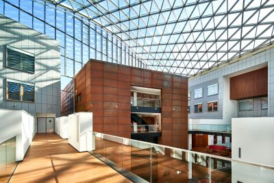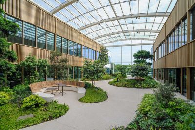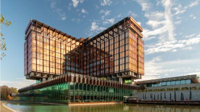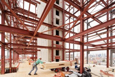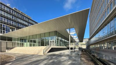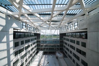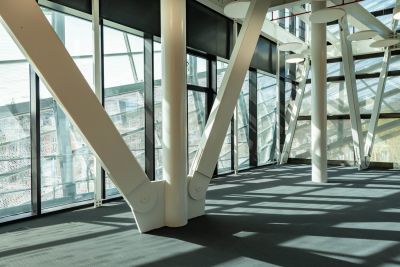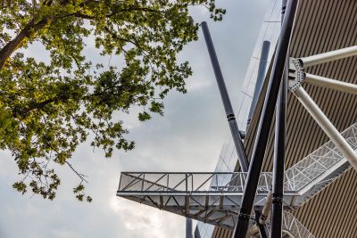 <p>Concrètement, une infrastructure en acier a été suspendue au squelette de la base en béton et une structure en acier impressionnante a été ajoutée au nord du bâtiment pour soutenir les nouvelles terrasses. Ces ossatures en acier sont devenues le support des différents éléments de façade : lamelles, plafonds, passerelles et revêtements de façade.</p>