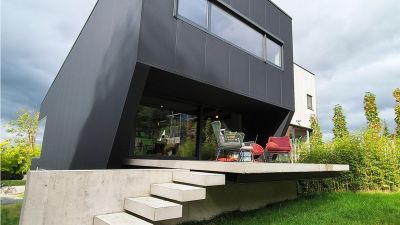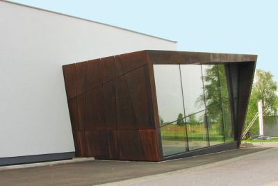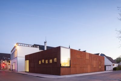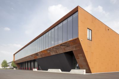 Tekst: Pour le magasin de mobilier contemporain Side à Arlon, trois façades ont été habillées en acier auto-patinable ('corten') ainsi que le pourtour de la paroi vitrée pour un total de 140 m². Les tôles respectent un calepinage oblique sur des façades qui le sont tout autant. Pour accentuer le caractère contemporain du projet, les tôles sont à arêtes vives avec un joint creux de 12 mm entre elles. Les arrêtes entre les différentes façades sont également à angle vif. Aucune fixation n’est visible. La paroi vitrée consiste en un mur rideau également oblique, en acier léger et très fin rapporté sur la charpente en acier du bâtiment.