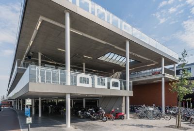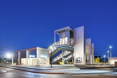 Tekst: <p>La gare de Fleurus est conçue comme un écosystème-gare : la gare n’est plus un seul bâtiment figé mais une série d’objets identifiables formant un tout cohérent. Chaque objet est conçu pour favoriser la flexibilité et l’évolutivité, imprimer une grammaire architecturale commune et identifiable, tout en répondant au programme de mise en accessibilité autonome du site, d’optimalisation de l’intermodalité (bus-train, dont les liaisons vers l’aéroport, auto-train, vélo-train) et de renouvellement des quais.<br /></p><p>A Fleurus, l’écosystème gare est composé par : la passerelle (structure acier tri dimensionnelle modulée sur un pas de 6 m) ; le parking vélos et d’attente intermodale (structure acier poteaux-poutres/ pas de 3 m) ; et le bâtiment des voyageurs, d’attente, et de parkin vélos.<br /></p><p>L’acier - S355 JR H galvanisé peint en atelier- a été choisi pour : sa mise en œuvre rapide et précise (détails, légèreté, préfabrication) ; sa robustesse au quotidien ; et bson potentiel d’évolutivité, de circularité et de recyclage.</p>