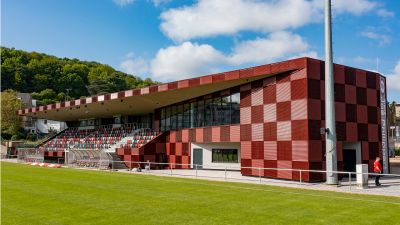 Tekst: La nouvelle structure d’ascenseur avec sa passerelle piétonne à Hesperange au Grand-Duché relie le centre du village au plateau Holleschbierg et constitue une initiative clé en faveur de la mobilité douce et l’accessibilité universelle. La tour d’ascenseur, haute de 35 m, précédée d’une place publique avec mobilier urbain, local à vélos et toilettes publiques, est construite autour d’un noyau en béton armé, complété par un escalier à plusieurs volées et quatre colonnes en acier galvanisé. Une passerelle piétonne en acier de 38 m de long, conçue comme une structure à travée unique, survol le versant boisé sans appuis intermédiaires et se raccorde aux cheminements existants menant au centre sportif. Les façades métalliques perforées de la tour et de la passerelle offrent des vues variées et confèrent à l’ensemble une forte identité architecturale. L’acier régional, la préfabrication, les assemblages entièrement vissés ainsi que la possibilité de rééquipement garantissent durabilité et pérennité de l’ensemble. L’ouvrage allie fonctionnalité et respect du paysage devenant ainsi un projet d’infrastructure emblématique.