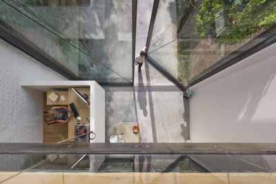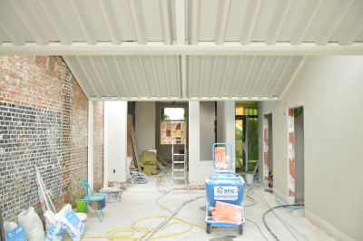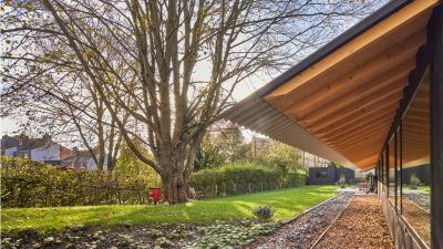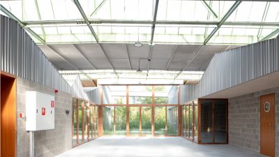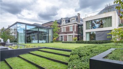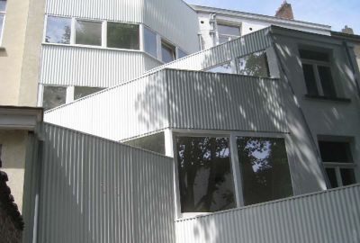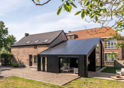 <p> Le garage, qui avait peu de valeur, a été démoli pour le remplacer par une structure en acier totalement orientée vers le jardin, abritant le nouveau séjour. L’ossature métallique permet de distinguer sur le plan visuel et architectural les parties nouvelle et ancienne : le bâtiment existant, caractérisé par ses murs en briques pleines magnifiquement restaurés, et la nouvelle construction avec ses contreventements, ses colonnes HEA 200 servant de structure portante et parées de tôles murales ainsi que de plaques de toiture appropriées.</p>