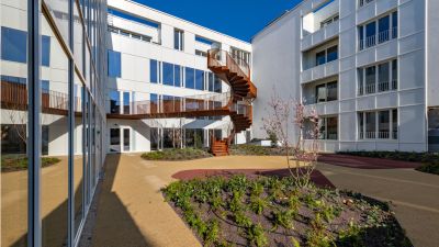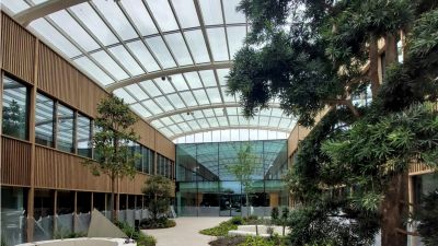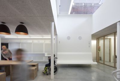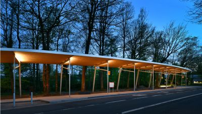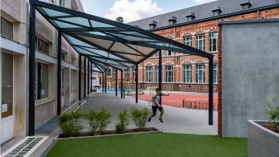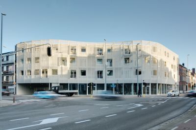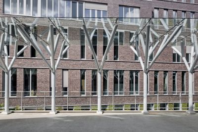 Tekst: L’Hôpital Maria Middelares à Gand a fait l’objet d’une rénovation totale. Le projet comporte deux constructions en acier. La structure portante de l’auvent est une structure arborescente répétitive avec une toiture en vitrage vissé. La construction protège et supporte le visiteur sur son trajet jusqu’à la nouvelle entrée de l’hôpital. La cage d’ascenseur assure une liaison rapide entre le parking souterrain et l’entrée du complexe.
