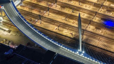 Tekst: Albi (près de Toulouse, FR), une ville au riche passé tumultueux, a obtenu en juillet 2010 le statut de patrimoine mondial de l’UNESCO pour son centre historique. C’est dans ce contexte qu’est née l’idée de créer une passerelle cyclo-piétonne qui agirait en porte-à-faux d’un viaduc ferroviaire du XIXe siècle.