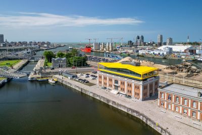 Tekst: <p>Bruges a enrichi son patrimoine d’un bâtiment important, le « Bruges Meeting & Convention Centre » (BMCC), situé non pas en périphérie, mais à l’intérieur de la ville historique et de la ceinture d’eau de la cité médiévale. La brique rouge-brun a été choisie pour les façades extérieures, la palette de couleurs dominantes de la ville. Le Bruges Meeting & Convention Centre (BMCC) comprend un hall d'exposition multifonctionnel et un espace de conférence pouvant accueillir plus de 500 participants.<br>