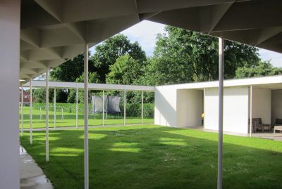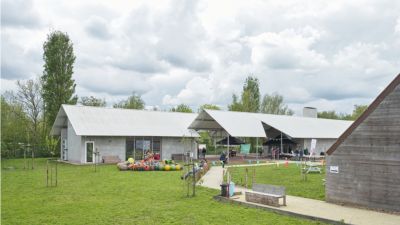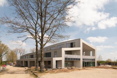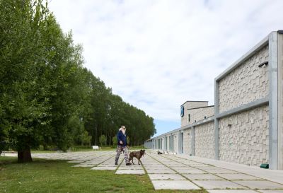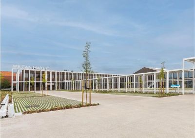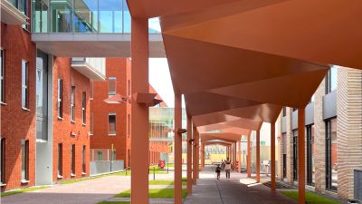 Tekst: Les 190 habitations d’assistance Prins Kavelhof ont été conçues comme des villas urbaines au milieu d’espaces verts. Une pergola en méandre relie les bâtiments. En se pliant en direction des structures arborescentes existantes et entre ces dernières, elle assure la transition avec le paysage environnant. Elle est suffisamment élevée de manière à ce que les services de secours puissent passer par-dessous. Les enfants peuvent y jouer, les bancs de repos y sont protégés et c’est un endroit sûr pour des rencontres informelles.