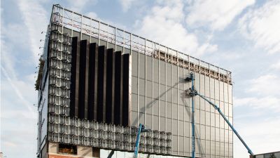 <p>L’ensemble du système de façade et de son infrastructure a été entièrement développé et produit suite à une mesure précise de la situation existante par l’intermédiaire d’un nuage de points 3D. Ces informations ont ensuite été transformées en un modèle BIM, de sorte que la production de l’acier et le montage au chantier puissent se dérouler de manière très efficace et avec un minimum de nuisances.</p>