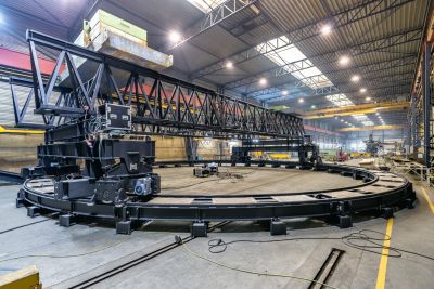 Tekst: Le pont Haringvliet, inauguré officiellement en 1964, est un pont routier de 1220 m de long situé sur l'autoroute A29 à Numamsdorp (Zuid-Holland). Ce pont partiellement fixe et partiellement mobile enjambe l'ancien bras de mer Haringvliet. Cette liaison riveraine constitue un maillon important dans le trafic entre les provinces de Zuid-Holland, Zeeland et Noord-Brabant, mais aussi dans le trafic pendulaire entre la Belgique et Rotterdam. En raison de son utilisation intensive, le tablier du pont, le mécanisme de mouvement et les installations et systèmes techniques du pont nécessitaient d'être remplacés. 'Rijkswaterstaat' (Gestion des eaux d'État) a confié la rénovation des parties mobiles du pont Haringvliet au maître d'œuvre 'Combinatie Mobilis Croonwolter&dros' (CMCH), qui s'est également chargé des modifications des ouvrages d'art et du remplacement de toutes les installations techniques. Hollandia Infra et Machinefabriek Rusthoven, sous le nom de 'Combinatie Staal Haringvliet', ont réalisé conjointement les travaux de construction métallique et mécanique en sous-traitance du consortium CMCH. Hollandia s'est chargée de la construction métallique, à savoir la production et le montage du tablier en acier de plus de 2000 tonnes, y compris le caisson de lestage et le lest, ainsi que la crémaillère de 23 m de long et de 106 tonnes dans la cave du pont. Machinefabriek Rusthoven s'est chargé de la production et le montage du mécanisme de mouvement, y compris les moteurs et les boîtes d'engrenages à l'arrière du caisson de lestage du tablier et les supports dans la cave. La rénovation du pont Haringvliet est un projet qui impressionne et surprend par son ampleur, la précision de ses dimensions et la réussite de sa mise en œuvre dans un délai extrêmement court. Tout cela dans le contexte de l'impact social important de ces projets d'infrastructure de remplacement et de rénovation indispensables : le pont a fait l'actualité fréquemment au cours de l'été 2023. En raison de la taille et du poids considérables du tablier à remplacer - l'un des plus grands ponts basculants des Pays-Bas - des calculs complexes ont été effectués pendant la phase de préparation et des structures auxiliaires spéciales ont été développées et fabriquées. Cela était notamment nécessaire pour permettre, par exemple, l'opération de basculement sur le site de Hollandia Infra en toute sécurité et de manière contrôlée. Le basculement réussi du pont Haringvliet a donc marqué une étape importante dans le projet. En bref, un projet très impressionnant dans sa simplicité apparente !