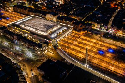 Tekst: <p>Afin de faire face à l’augmentation du flux de voyageur, la Gare de Luxembourg au Grand Duché s’est développée à travers la création de deux nouveaux quais.<br /> D’une largeur de passage de 4 mètres, d’un design beaucoup plus moderne et de forme ovale, un nouvelle passerelle garantit l’accès aux 6 quais de la gare tout en facilitant le passage des riverains entre les quartiers Gare et Bonnevoie.<br /> La passerelle, avec ses 100 m de longueur, est composée d’un tablier en acier à dalle orthotrope, permettant une hauteur de construction minimale pour des portées conséquentes. Des cintres en profilés métalliques HEB 140 portant la toiture et servant de support pour les panneaux en verre courbe sont fixés au tablier tous les 1,50 m.<br /> La structure est constituée de cinq tronçons et se compose d’une dalle orthotrope et d’un système de toiture, cintrée avec une façade en verre courbe. La pose de la passerelle a nécessité la mise à l’arrêt de la gare pendant une semaine. C’est pourquoi le constructeur métallique a opté pour la réalisation de montages à blanc de l’ouvrage dans son atelier en Belgique.</p>