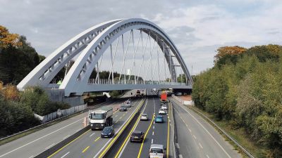 Ondertitel: Un pont en arc avec structure Vierendeel