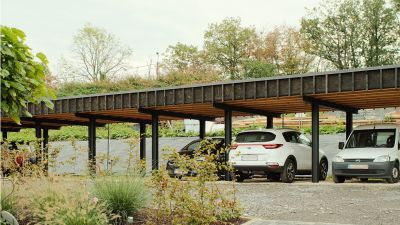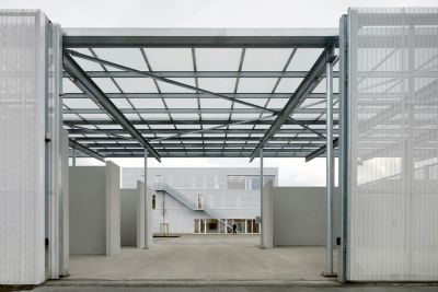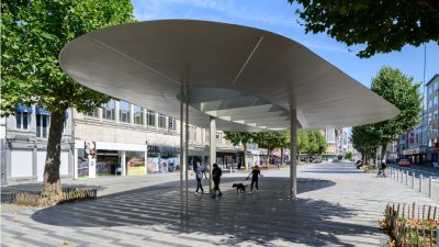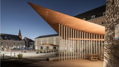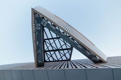 Tekst: L’auvent de 200 m de longueur a été conçu pour un nouvel espace public à Misumi, une petite ville de la province de Kumamoto au Japon, située au bout d’une liaison ferroviaire touristique. Cet auvent guide les visiteurs vers le port et, malgré sa hauteur de 4,5 m, a un rayonnement léger. La toiture dans son ensemble est structurelle. Elle et se compose de deux tôles de 9 et 12 mm d’épaisseur espacée de 250 mm. Des raidisseurs transversaux internes assurent la rigidité de l’ensemble.