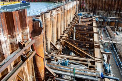 Tekst: Le 'Keel Crossing' à Sunderland dans le nord-est de l'Angleterre, est un nouveau point de repère dans le paysage urbain et fait partie du projet Riverside Sunderland. Le pont relie Keel Square au quartier de Sheepfolds, près du Stadium of Light. Conçu par Knight Architects et Arup, consiste d'une poutre principale en acier de 250 m de long et 7,5 m de large en forme de trapèze (1180 tonnes, S460) avec des panneaux de tablier en béton, à plus de 30 m au-dessus de la rivière Wear. Le résultat est un passage spacieux pour les piétons et les cyclistes, tout en permettant la libre circulation des bateaux. Victor Buyck Steel Construction a fabriqué la structure en acier en Belgique, divisée en quatre segments. La hauteur variable et le positionnement précis des goujons exigeaient une grande précision. À Wondelgem, les éléments ont été assemblés, conservés et équipés de Tuned Mass Dampers. Le montage à Sunderland s'est déroulé en deux phases à l'aide de pontons et de grues Mammoet. La travée centrale de 105 m a été soulevée à l'aide de vérins de levage et reliée aux autres segments. Après la mise en place, ont suivi les panneaux en béton et les finitions. Depuis son ouverture en août 2024, le pont a suscité beaucoup d'intérêt et est devenu un maillon essentiel pour des milliers d'utilisateurs quotidiens.