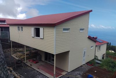 Tekst: La construction à ossature en acier est une nouvelle méthode de construction à La Réunion. Les structures légères en acier formé à froid ont paru suffisamment robustes pour résister aux ouragans et aux tremblements de terre et ont permis de maîtriser les frais de transport depuis les pays d’outre-mer. Le magnésium du revêtement métallique garantit un effet autoréparateur, ce qui fait que les bords de découpe et les rives trouées sont protégés extrêmement longtemps contre la corrosion, importante pour des habitations situées dans un climat côtier agressif.