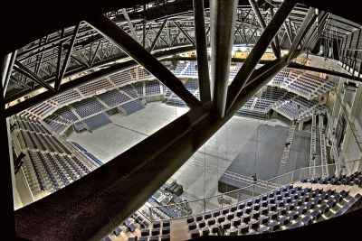 Tekst: Élément représentant la proue du navire, la « pointe acier » du MICX à Mons est visuellement très importante. Les détails et la géométrie ont été particulièrement soignés. L’acier a été retenu comme matériau car il permettait de concilier les souhaits et impositions des différents intervenants. De plus, au vu des grandes portées (jusqu’à 17 m de ‘porte-à-faux’ !). Les dalles portantes du centre de congrès ont été réalisées en construction mixte acier-béton.