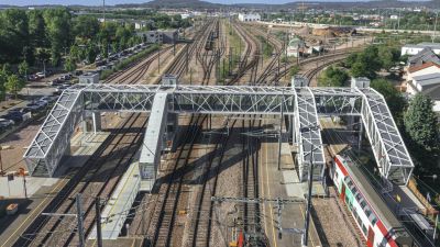 Ondertitel: La pièce maîtresse de la nouvelle gare de Fleurus est une impressionnante passerelle.