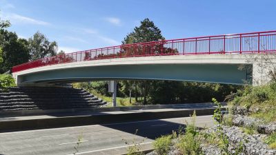 Tekst: Dans le cadre de la rénovation du pont OA318 sur la N12 enjambant l’Attert à Reichlange (Redange-sur-Attert), une nouvelle passerelle cycliste et piétonne est créée à côté de l’ouvrage existant. Cette passerelle métallique a une portée de 36,22 m. La structure portante est un treillis tridimensionnel entièrement soudé d’atelier et constitué de 3 tubes D273 longitudinaux, complétés de diagonales et traverses en tubes D139,7. Le platelage, d’une largeur de 3 m est constitué d’une poutraison longitudinale et transversale en HEA100 et de tôles d’épaisseur 8 mm, le tout entièrement soudé sur la structure portante. La structure portante tubulaire est réalisée en acier S355 tandis que le platelage est réalisé en acier S235JR. L’ensemble de l’ouvrage métallique a un poids de 24 tonnes. Un garde-corps composé de cadres tubulaires avec un remplissage en filet X-Tend, le tout en inox 316, équipe les 2 côtés du platelage. Un revêtement époxy-polyuréthane est appliqué sur l’entièreté de cette surface. La structure métallique a entièrement été assemblée et soudée en atelier, et ce, en 3 temps. La structure a été entièrement sablée, métallisée et peinte, en une pièce, en atelier, suivant le système anti-corrosion ZTV-ING 4-3 (pour une classe de corrosivité C5).