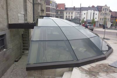 Tekst: Dans le cadre de Mons 2015, Capitale européenne de la culture, un nouveau musée a été ouvert au cœur du beffroi de Mons. Un ascenseur vitré haut de 40 mètres avec construction d’escalier correspondante garantit l’accessibilité de la tour. La cage d’ascenseur est constituée d’une construction de gaine en profils d’acier revêtus et galvanisés à chaud, recouverts d’un vitrage vissé. La construction de l’escalier est constituée d’un ouvrage en acier découpé au laser avec grilles praticables perforées.