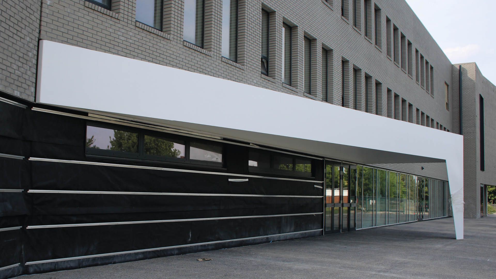 Un grand auvent en acier pour bâtiment scolaire