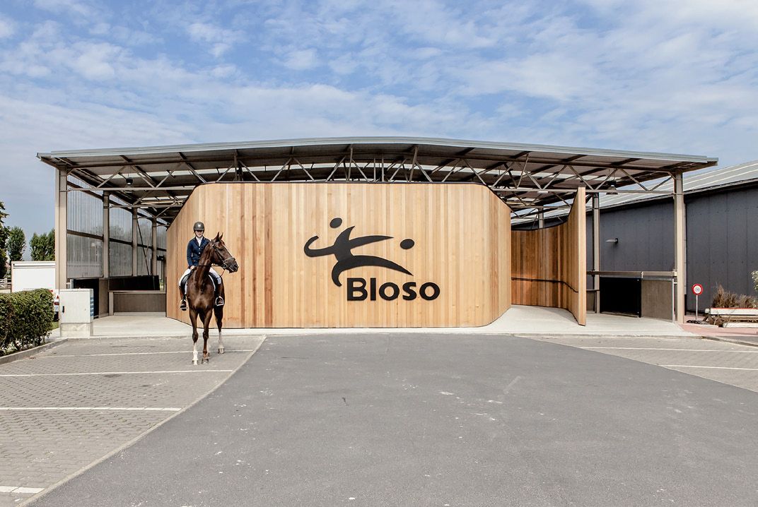 Le Bloso – qui s’appelle aujourd’hui Sport Vlaanderen – a exécuté au cours de ces dernières années un certain nombre de travaux importants dans son centre équestre de Waregem, dont l’extension du paddock existant. Ceci crée une piste pour cavaliers à part entière de 80 m sur 22 m, qui permet aux cavaliers de concourir au niveau olympique. A la tête de l’extension, un volume supplémentaire forme la nouvelle façade et fait office de tribune. L’ouvrage est constitué d’une structure en acier avec marches de tribune en béton et est revêtu de planches en bois de cèdre.