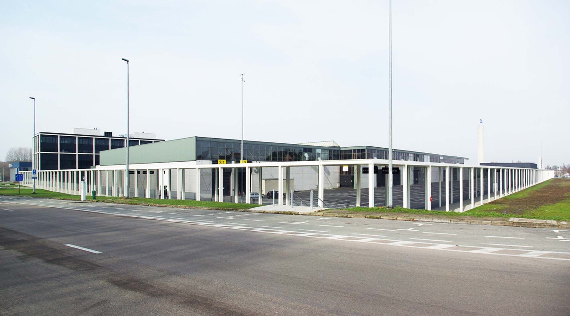 Kortrijk Xpo est un site d’exposition typique : un ensemble composite de halls, de plateaux de montage, de liaisons et d’espaces verts. Une galerie conçue comme une grille modulaire en acier, a été installée autour de cet ensemble disparate.